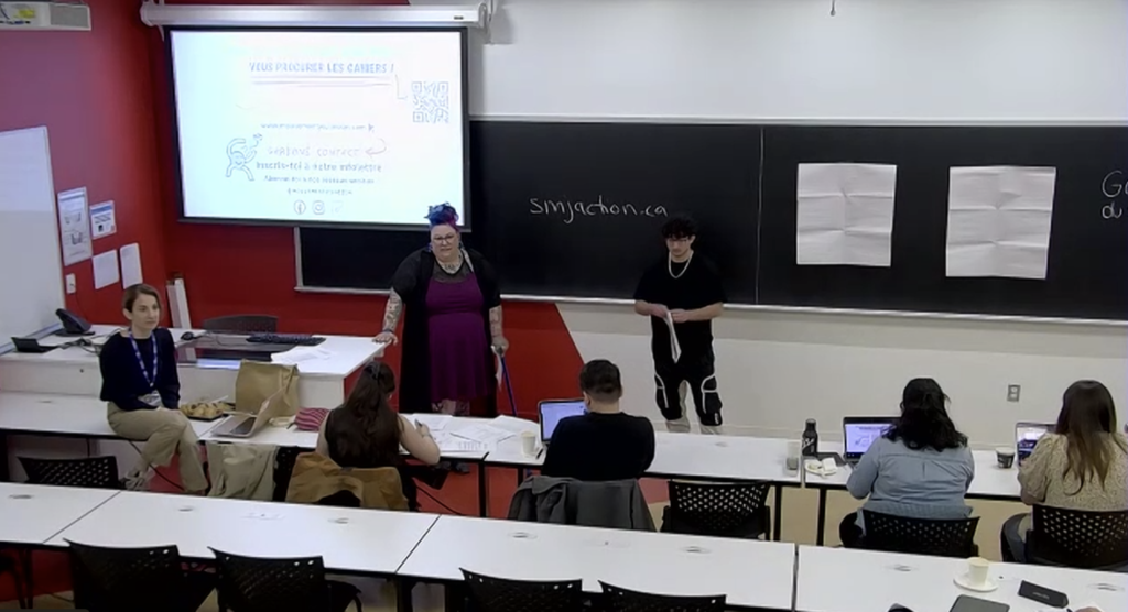 Nous avons présenté les résultats préliminaires de notre projet intitulé « Santé mentale et protection de la jeunesse (PJ) » lors du symposium Coalition Jeunes+ 2024, qui s’est tenu à Québec. Dans le cadre d’une activité de type café-causerie, nous avons eu l’occasion d’échanger avec des jeunes impliqués dans les services de protection de la jeunesse ainsi qu’avec des jeunes ayant vécu des expériences similaires. Ces discussions ont porté sur deux grandes questions :