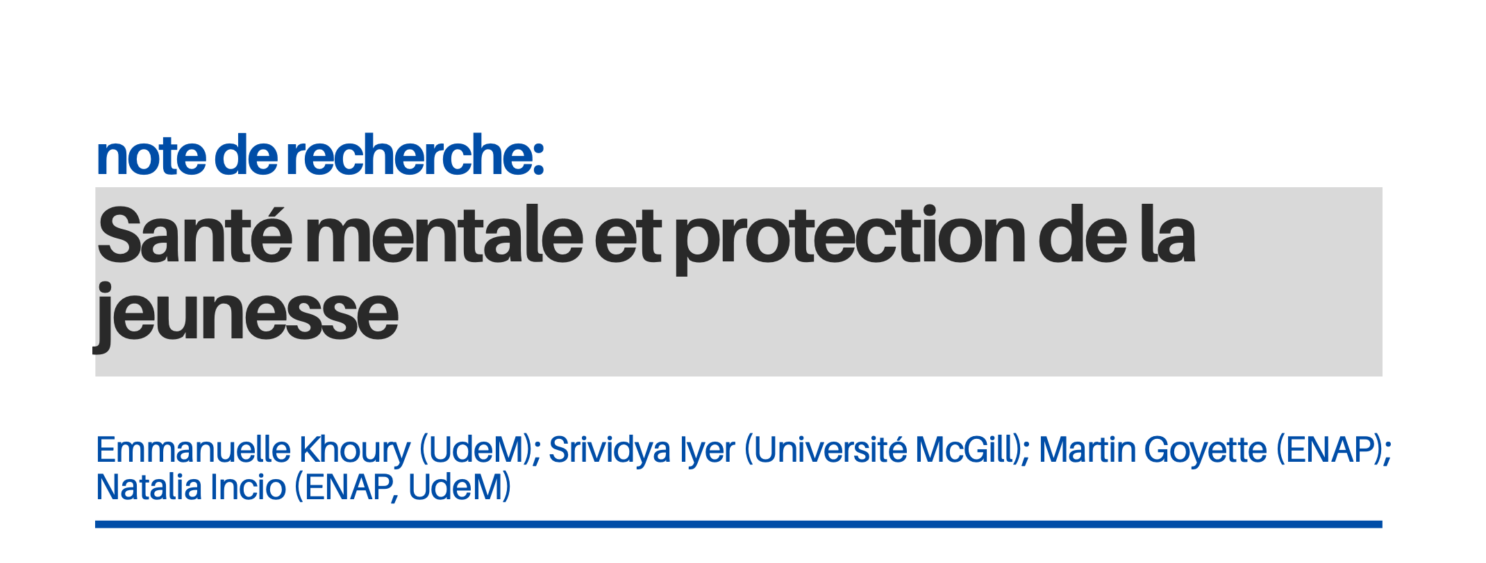 The Mental Health and Youth Protection research project is funded by the Canadian Institute of Health Research from 2023 to 2025.